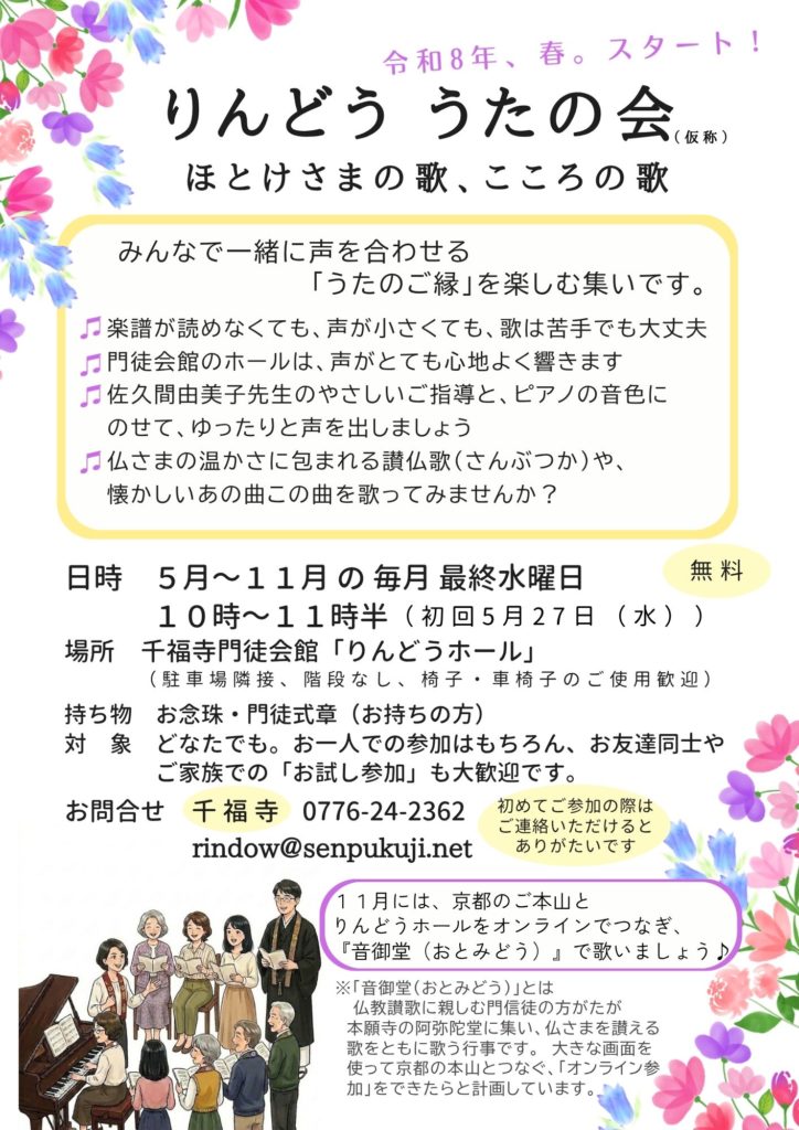 みなさんで一緒に声を合わせる「うたのご縁」を楽しむ集いを始めます。